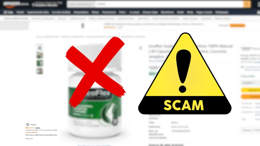 1️⃣ Frascos falsos de vendedores no autorizados: los compradores adquirieron Incaflex falsificado en sitios web no oficiales y recibieron productos que no se correspondían con la fórmula original.