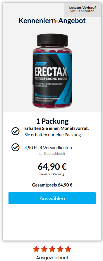 Die Ergebnisse variieren je nach Körper des Benutzers, aber viele berichten von erheblichen Verbesserungen ihrer sexuellen Erfahrungen. Zusammenfassend ist Erectax eine vielversprechende Option für Männer, die ihre sexuelle Gesundheit auf natürliche Weise verbessern möchten.